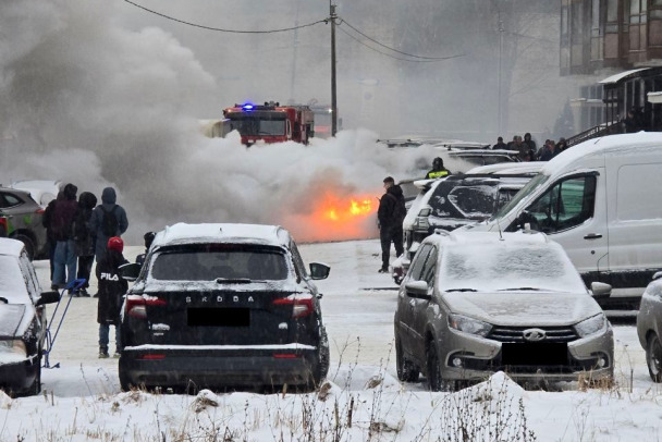 Дымовая завеса поднялась от горящих машин в Гатчине - видео