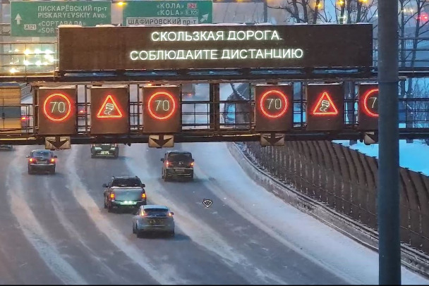 ФКУ Упрдор "Северо-Запад" предупредил об ограничениях на КАД Санкт-Петербурга. Автомобили могут передвигаться только на скорости до 70 км/ч.
