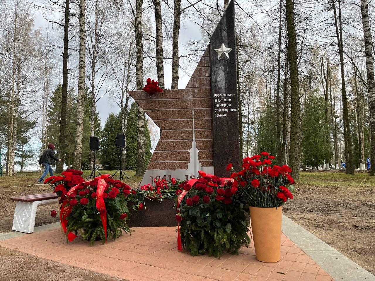 На территории мемориала "Синявинские высоты" под Кировском в преддверии 80-летия Дня Победы открыли памятный знак, посвященный красноярцам, которые защищали Ленинград.