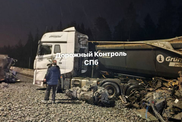 Появились подробности аварии с двумя большегрузами на трассе "Скандинавия" в Выборгском районе Ленобласти.